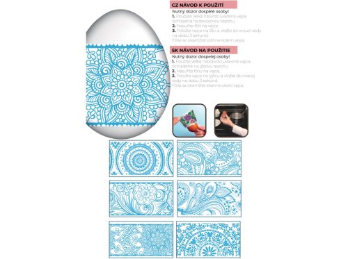 Fólie jsou vhodné pro snadné a rychlé zdobení velikonočních vajec. Stačí fólii navléknout na vejce a krátce ponořit do horké vody. Tradiční cibulákový vzor dodá kraslicím elegantní a klasický vzhled, ideální pro sváteční výzdobu. Zboží je dodáváno v mixu. Doručované zboží je vybíráno náhodně a nelze vybrat konkrétní provedení.