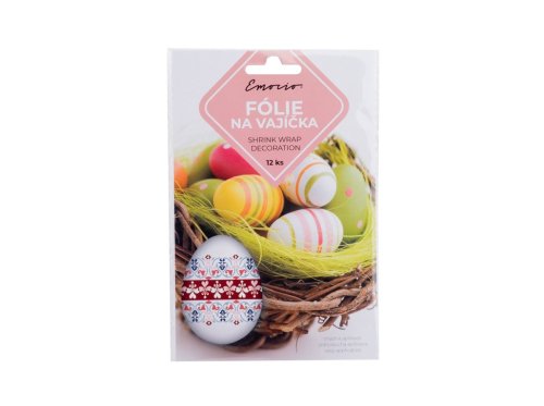 Dekorační fólie na velikonoční vejce s různými geometrickými motivy v pestrých barvách. Balení obsahuje 12 kusů fólií o rozměru 185×124 mm, dodávaných v barevném mixu, jednotlivé vzory se mohou lišit.