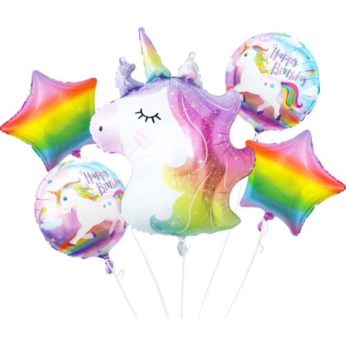 Sada fóliových balónků. Jednotlivé kusy ve tvaru jednorožce.