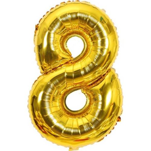 Fóliový balónek číslo 8, zlatý, 102 cm.