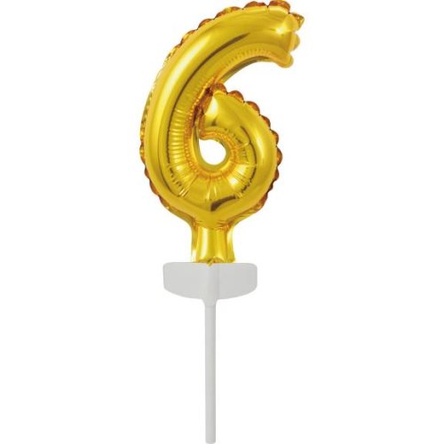 Fóliový balónek zlatý mini - zápich do dortu číslo 6.