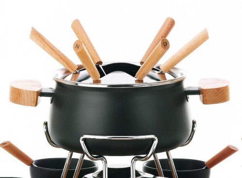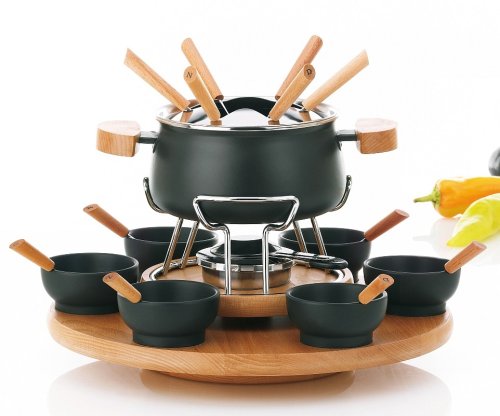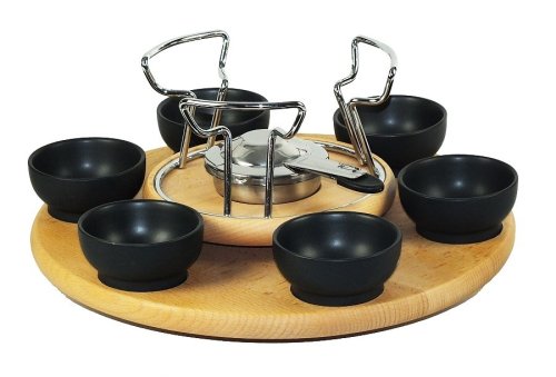 Fondue sada 23 ks NATURA smalt / keramika / dřevo KL-61201