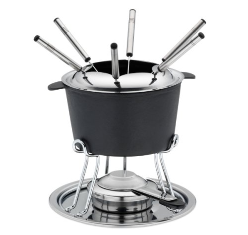 <STRONG>Fondue set COMORE z pravé litiny a nejkvalitnější nerezové oceli je vynikající pro přípravu a stylové podávání čokoládového nebo masového fondue.Set je vhodný až pro 6 osob, ideální způsob jak překvapit vaše hosty.</STRONG>- materiál: litina / nerezová ocel 18/10- výška: 19,5 cm- průměr: 20 cm- set obsahuje 11 částí:- smaltovaná nádoba 0,8 L- nerez hořák na pastu- nerez tácek- chromovaný stojan- nerez poklička/držák na vidličky- 6x vidlička s rozlišením- samotná nádoba je vhodná na všechny druhy sporáků- barva: černá / nerez- značka: KELA