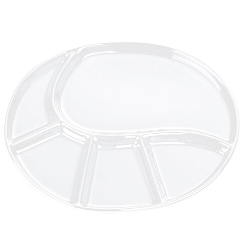 servírovací talíř rozdělený na 5 částí- vyrobený z keramiky z lesklou glazurou v čistě bílé barvě- ideální pro servírování surovin při přípravě fondue- stejně dobře poslouží k podávání pochutin, předkrmů i dipů- rozměry: 28 x 22 x 2,5 cm- barva: čistě bílá, lesklá- značka: KELA