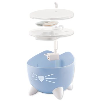 Fontána pro kočky je vybavena energeticky úsporným a velmi tichým čerpadlem, které se automaticky vypne, když je hladina vody příliš nízká. Filtr s trojím účinkem zajišťuje důkladně vyčištěnou vodu.