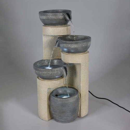 fontána, moderní design s led, 2 led, materiál: polyresin: s venkovním adaptérem ip44 (3.12w / 12vac/400ma) , přívodní kabel: 200cm, materiál: polyresin, velikost: 280x240x490mm, s venkovním adaptérem ip44 (3.12w / 12vac/400ma)