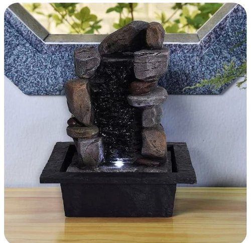 - dekorační pokojová fontánka s uzavřeným oběhem vody- poskytuje příjemné klima, jelikož přirozeně zvlhčuje vzduch- osvětlení ještě více podtrhne příjemnou atmosféru a společně se zvuky tekoucího vodopádu …