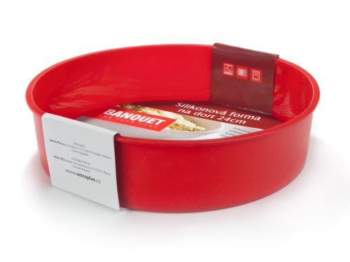 Silikonová forma na dort 24 cm Red CULINARIA, výška 6 cm. Formu lze používat do elektrické i mikrovlnné trouby, je odolná vysokým teplotám (do 230 st. C). Neváže chutě ani pachy pokrmů a snadno se udržuje (lze mýt v myčce na nádobí). Silikon je velmi populární materiál, který pro své jedinečné vlastnosti našel uplatnění i v kuchyni. Vyrábí se z něj různé druhy forem na pečení, vály a válečky na těsto, stěrky, mašlovačky, kuchyňské náčiní a mnohé další výrobky.