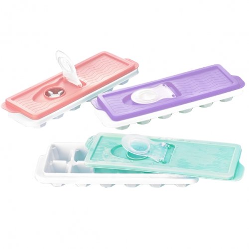 Plastová forma na 12 kostek ledu. Ve víčku otvor na nalévání vody. Díky víčku je vkládání do mrazničky bezpečné a pohodlné. Mix barev víčka dle skladové dostupnosti. Rozměry 26.5 x 11.5 x 3.5 cm. EAN 8694064002500