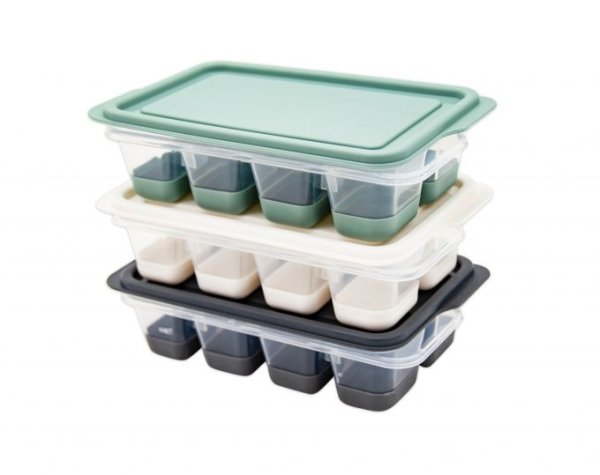 Plastová forma na 8ks kostek ledu s víčkem. Forma je vybavena silikonovým dnem pro snadné vytlačení kostek. Rozměry formy 12.7 x 7.3 x 3.5 cm. Barva dle skladové dostupnosti, BPA Free. Cena za sadu 3ks forem. EAN 8696287160166