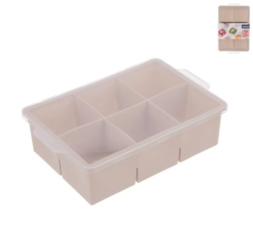 Forma na led s průhledným víkem vytvoří velké kostky ledu (6 kostek). Které se hodí do džbánů nebo zásobníků s kohoutkem. Kromě klasických ledových kostek můžete vytvořit také ledové kostky s kousky ovoce. Stejně dobře forma poslouží na zamrazení nastrouhané nebo namixované zeleniny, na vývar, na bylinky (pesto), na dětské příkrmy. Díky pružnosti materiálu se ledové kostky po zamrazení snadno z formy vyklopí. Materiál termoplastická guma TPE, plast PP (víčko). Rozměry 18.5 x 12 x 5 cm, jedna kostka 5 x 5x4.5 cm. Možno mýt v myčce. EAN 8592381224288