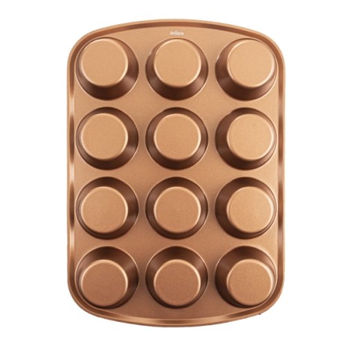 Designová forma na přípravu 12 kusů muffinů o průměru 7 cm, v dolní části 4,5cm, v luxusně vypadajícím provedení a barvě mědi .