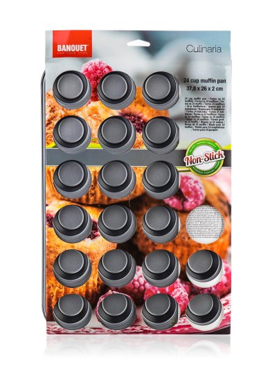 Forma na 24 ks vdolečků CULINARIA je vyroben z uhlíkové oceli s nepřilnavým povrchem (Xynflon). Vnější i vnitřní povrch je ve stříbrnošedém provedení. Nepřilnavý povrch XYNFLON je vyroben na bázi PTFE (polytetrafluorethylen), je vysoce odolný, má prvotřídní antiadhezní vlastnosti a snadno se udržuje.
