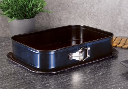materiál: uhlíková ocel s nepřilnavým povrchem - nepřilnavý povrch vhodný pro pečení s minimem tuku - velmi pohodlná údržba, jídlo se nepřipaluje - rozkládací forma s oddělitelným dnem - spodní díl v sadě využitelný jako servírovací tác - rozměry: 39 x 27 x 7.5 cm - vhodné do trouby do teploty 240°C - tmavě modrá metalická vnější barva - kolekce Aquamarine Metallic Line - ECOfriendly, neobsahuje žádné škodliviny jako Pfoa, olovo ani kadmium