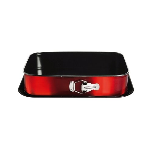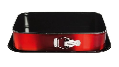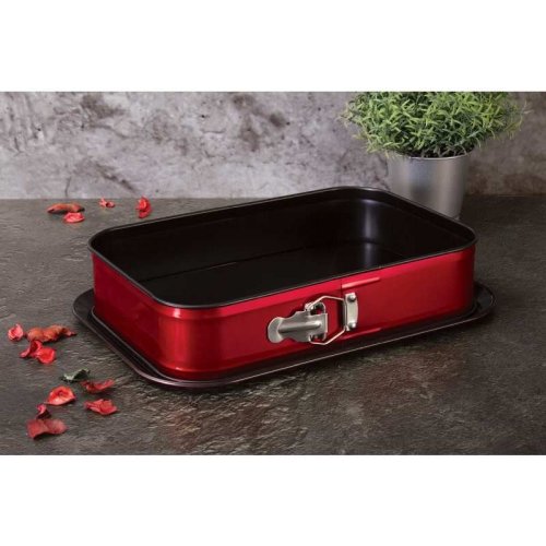 materiál: uhlíková ocel s titanovým povrchem - nepřilnavý titanový povrch vhodný pro pečení s minimem tuku - velmi pohodlná údržba, jídlo se nepřipaluje - rozkládací forma s oddělitelným dnem - spodní díl v sadě využitelný jako servírovací tác - rozměry: 39 x 27 x 7.5 cm - vhodné do trouby do teploty 240°C - červená burgundy metalická vnější barva - ECOfriendly, neobsahuje žádné škodliviny jako Pfoa, olovo ani kadmium