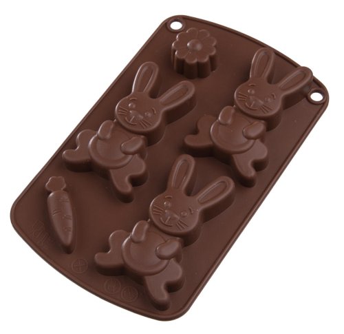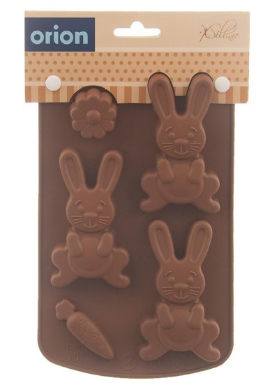 rozměry: 13,5 x 21 x 1,5 cm rozměry zajíc cca: 8,5 x 5 cm materiál: silikon barva: hnědá motiv: zajíček 3 ks, mrkev 1 ks, květina 1 ks
