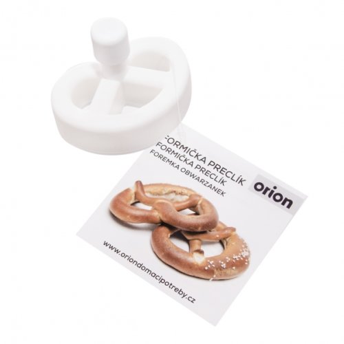 Rozválený plát těsta o síle cca 5 mm z obou stran pomoučíme a formičkou vykrojíme. Stisknutím tlačítka vytlačíme vykrojený tvar do dlaně druhé ruky a umístíme na vymaštěný plech, pečící fólii nebo pečící papír. Rozměry 7 x 4.5 x 5 cm. Příprava těsta na sýrové preclíky: 50 dkg hladké mouky, 25 dkg nastrouhaného eidamu, 25 dkg tuku, 250 ml šlehačky nebo smetany, 1 lžička soli, 1 žloutek, 1 prášek do pečiva, 2 lžičky vegety. Zdobíme kmínem, mákem, sezamovým semínkem nebo hrubou solí. Pečeme do růžova cca 12 až 15 minut při 150°C. Výborné k vínu nebo pivu. Při čištění vyšroubujeme vrut ve spodní části vyhazovače a formičku rozebereme, umyjeme v teplé vodě v běžných saponátových prostředcích, po oschnutí opět sestavíme. EAN 8594011951342