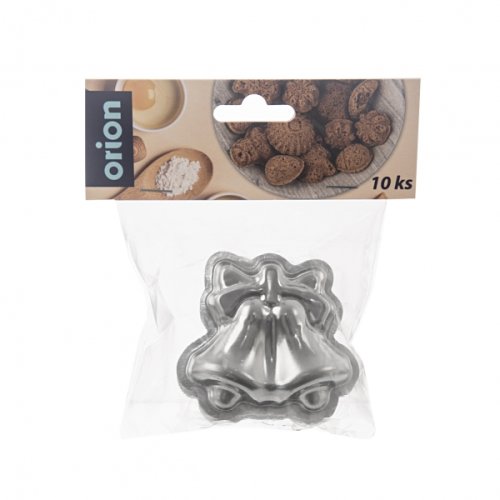 Formička na cukroví zvonky. Cena za balení 10 ks. Materiál pocínovaný zdravotně nezávadný plech. Rozměry 65 x 60 mm (V x Š). Není vhodné do myčky nádobí. EAN 8592381178345