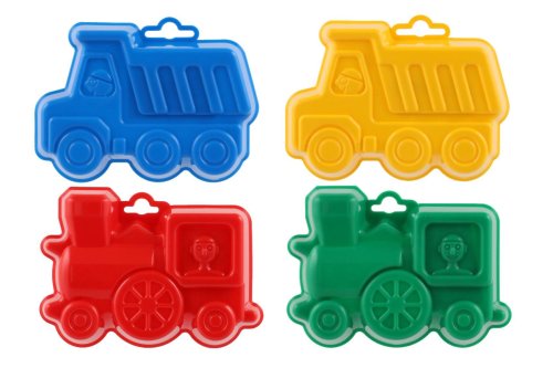 Plastové bábovky na písek ve tvaru dopravních prostředků. Rozměr 13 cm. Vhodné od 12 měsíců.