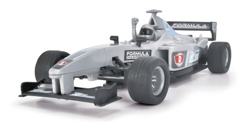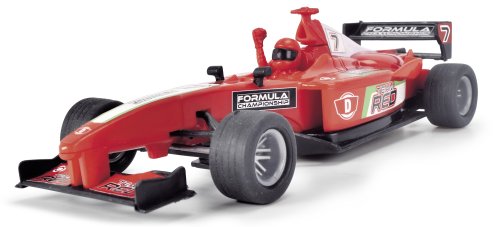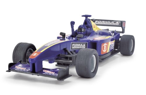 Závodní formule jezdí vpřed po natažení pomocí šňůrky. Nastavitelná přední kola. V měřítku 1:32, délka 14 cm. 3 barevná provedení - modrá, červená, stříbrná.