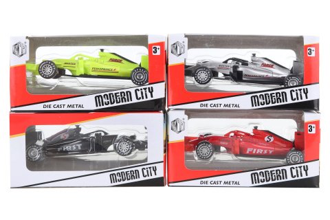 Kovový model formule o rozměru cca 13 x 3 x 5 cm. Rozměr balení cca 15 x 7 x 6 cm. Věk 3+