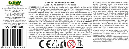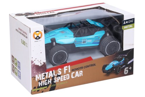 Formule kovová RC na dálkové ovládání. Velikost 21 cm. Frekvence 2,4 GHz. Pistolový ovladač. Formule bateriový pack 3.7V součástí, ovladač 2xAA není součástí. USB kabel součástí. Přepínač ON/OFF na ovladač a spodní straně formule.