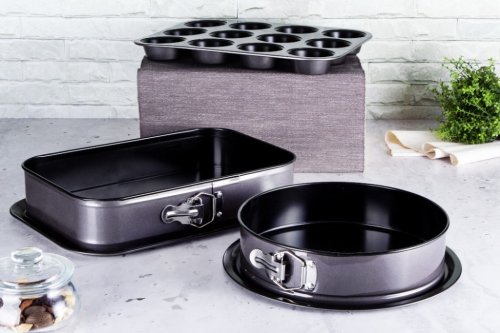 - sada pečících forem do trouby s titanovým povrchem- celkem 3 kusy různých forem na pečení včetně odnímatelných táců- forma na muffiny 12 muffinů 35 x 26,5 x 3 cm- kulatá pečící forma na dort 26 x 7 …