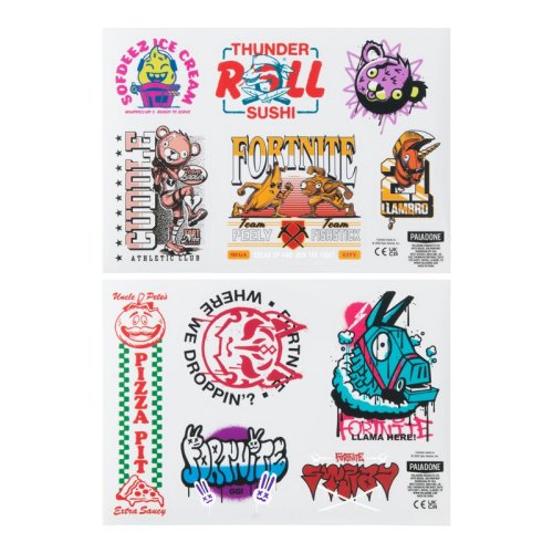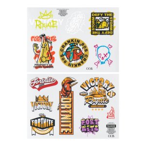Sada technických samolepek s motivy z populární hry Fortnite je určena především pro hráče, kteří chtějí personalizovat svá herní zařízení či další předměty. V balení se nacházejí čtyři archy samolepek, které obsahují různé technické a herní symboly charakteristické pro tuto značku. Samolepky jsou vyrobeny z kvalitního materiálu s lesklým povrchem, což jim dodává atraktivní vzhled a zároveň zajišťuje jejich odolnost vůči běžnému opotřebení.