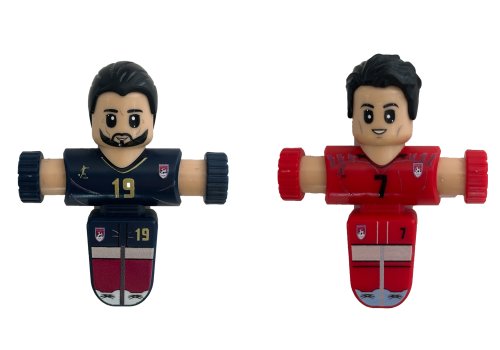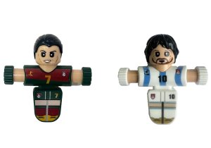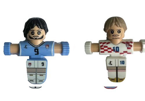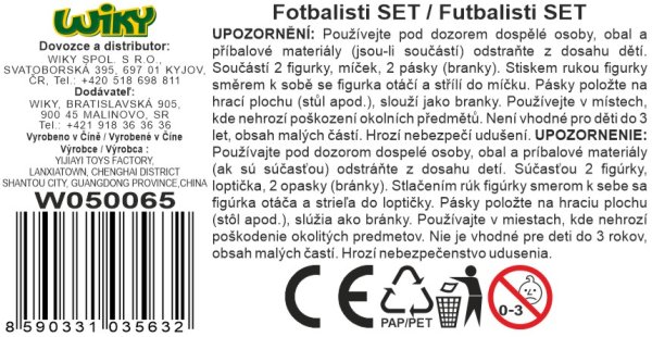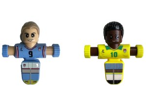 Fotbalista figurka vystřelovací set s páskami. Velikost figurky 7x7 cm. Obsahuje 2 figurky, míček, 2 pásky (které slouží, jako branky). Stiskem rukou směrem k sobě se figurka protočí a tím vystřelí. Pásky položte na stůl, představují branky. Více variant.