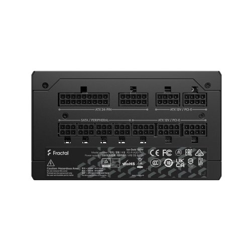Model: Fractal Desing Ion Výkon: 750W Formát: ATX Typ ventilátoru: 140mm ventilátor Fractal Design řady Dynamic s ložiskem LLS Rozměry: 150 × 150 × 86 mm Účinnost: 80 PLUS GOLD Vstupní napětí: 100–240 V střídavého proudu Vstupní proud: 10A/5A Vstupní frekvence: 50–60 Hz