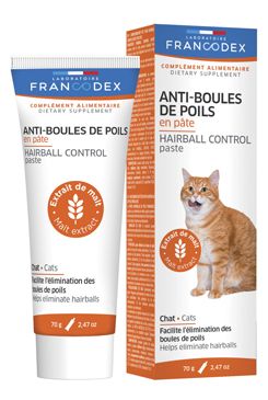 Doplňkové krmivo pro kočky. Tvorbě chlupových bezoárů lze zabránit častým česáním srsti a pravidelným užíváním pasty Hairball Control Paste podle pokynů. Kočky a koťata mohou při olizování srsti spolykat chlupy, které se mohou hromadit v žaludku a vytvářet tzv. hairball (chlupové bezoáry). Vznik bezoárů se projevuje zácpou, říháním, kašlem a zvracením. Návod k použití: Naneste pastu proti bezoárům na přední tlapky nebo na čumák, kde ji kočka může olízat. Když má vaše kočka nebo kotě hlad, olížou ji přímo z tuby nebo z vašeho prstu.