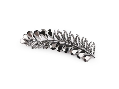 Francouzská spona ve tvaru pírka luxusně ozdobí slavnostní účes. Povrch je ozdobený broušenými kamínky, které se třpytí a zachycují světlo z různých úhlů, což přidává sponě na atraktivitě. Design s jemnými detaily působí přirozeně a elegantně. Ať už máte jemné prameny nebo husté lokny, touto sponou snadno sepnete vlasy do copu nebo vytvoříte elegantní drdol, který bude vypadat, jako kdyby ho vytvořil profesionál. Spona má velmi kvalitní celokovové provedení. Zacvakávací mechanismus je pevný. Délka části pro vlasy je 5 cm.
