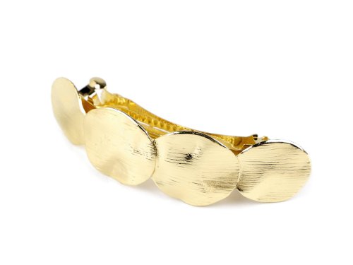 Celokovová francouzská spona poutavě ozdobí váš účes. Hodí se na společenské akce jako jsou plesy, svatby, návštěvy divadel, párty apod., ale využijete ji i na běžné nošení. Design spony je moderní a zároveň nadčasový, je ideálním doplňkem do každého šatníku. Dokáže udržet vlasy pevně na svém místě a přitom dodává účesu půvab a eleganci. Má velmi kvalitní provedení, zacvakávací mechanismus je pevný. Délka části pro vlasy je 5 cm.