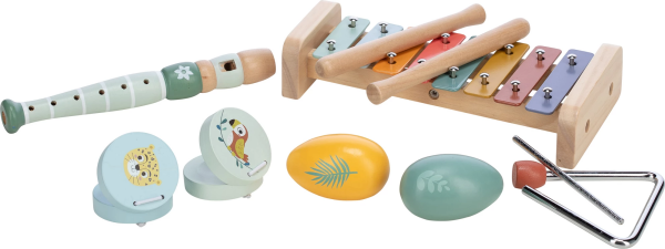 Sada pěti hudebních nástrojů pro všechny malé hudebníky. První hudební nástroje umožňují dítěti poznávat nové zvuky a tóny. Krásně barevný hudební set láká děti k jejich prozkoumávání.