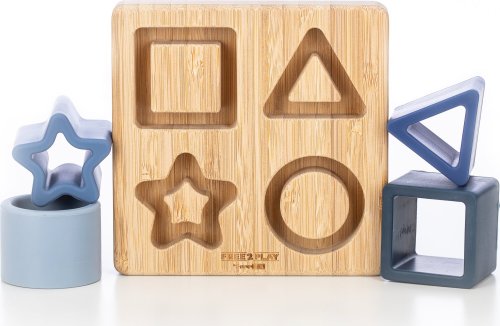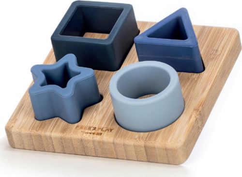 Dřevěná podložka se 4 silikonovými tvary pomáhá rozvíjet motorické dovednosti dítěte. Vlastnosti: