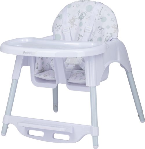 Pro samostatně sedící děti, vysoká + nízká varianta židle, pohodlné sedátko s polstrováním - snadno se čistí, 3-bodové bezpečnostní pásy, polohovatelná opěrka nohou.
