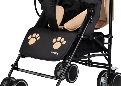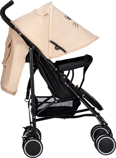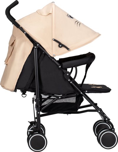 lehký klasický rám snadné a kompaktní skládání dvojitá kola brzdy na zadních kolech 5ti bodové bezpečnostní pásy s polstrováním nastavitelná opěrka zad se síťovinou nastavitelná opěrka nohou nastavitelná velká stříška s průhledem kapsa na příslušenství dětské madlo prostorný úložný koš