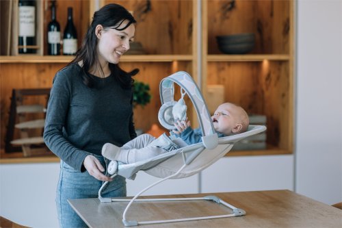 Vhodné pro novorozence od narození do max hmotnosti 9 kg, pevný kovový rám, jemné vibrace s nastavením intenzity (3 úrovně), odnímatelný oblouk se závěsnými hračkami, hudební box s 8 melodiemi a nastavením hlasitosti, 3 bodový bezpečnostní pás, rozvíjí představivost a motoriku, snímatelný a pratelný potah.