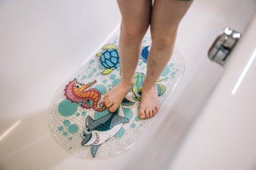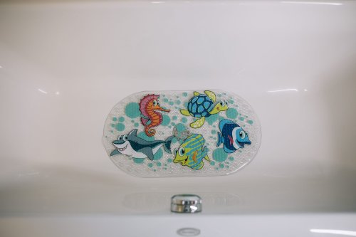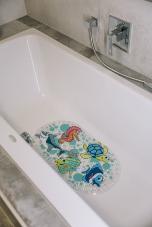 vhodná do vany i dětských vaniček, měkký materiál, pro správné připevnění podložky nejprve napusťte vanu vodou, poté umístěte podložku a rovnoměrně ji přitlačte na dno, rozměry: 69 x 39 cm.