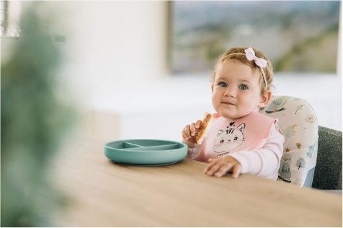měkký a lehký, s přísavkou - vhodný k samostatnému jezení, ideální pro použití doma i na cestách, vysoce kvalitní potravinářský silikon, snadné čištění, bez obsahu BPA, vhodné do mikrovlnky po dobu max 2 minut, rozměry: 18 x 18 x 4 cm, pro děti od 6 měsíců.