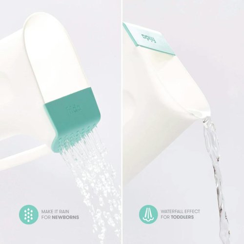 ČISTÉ OČI A UŠI: Dva způsoby oplachování, které vždy ochrání oči + uši. DUAL POUR: Dešťová sprcha pro novorozence nebo vodopád pro batolata. 2 ÚCHYTKY V 1: Nalévejte pomocí rukojeti nebo ergonomické rukojeti.