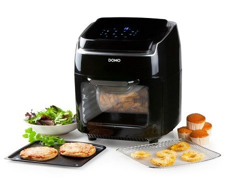 Kdo vlastní fritézu, určitě může potvrdit, že se jedná o skvělého pomocníka do kuchyně. Připravíte s ní širokou škálu pokrmů. Horkovzdušná fritéza Domo DO534FR je zařízení tzv. 3 v 1, neboť ji můžete použít jako horkovzdušnou troubu, fritézu nebo sušičku potravin. Díky tomu, že funguje na principu horkého vzduchu, budete využívat zdravé fritování. Snadno a rychle připravíte hranolky, ryby, houby, zeleninu. Na grilovacích mřížkách pak třeba špízy, kuře, plátky masa nebo grilovanou zeleninu.