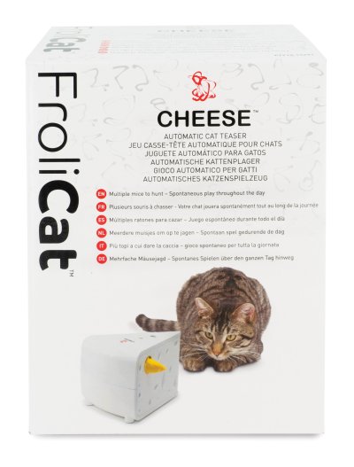 Tuto vzrušující hru na lov budou vaše kočky milovat. 2 myšky se schovávají a vykukují z bloku švýcarského sýru. Pro chvíle plné zábavy i ve vaší nepřítomnosti použijte funkci "Play While You Are Away“ (tento režim umožňuje náhodné spuštění hračky během dne). V režimu "One-Time-Play Mode" se hračka automaticky vypne po 10-15 minutách.