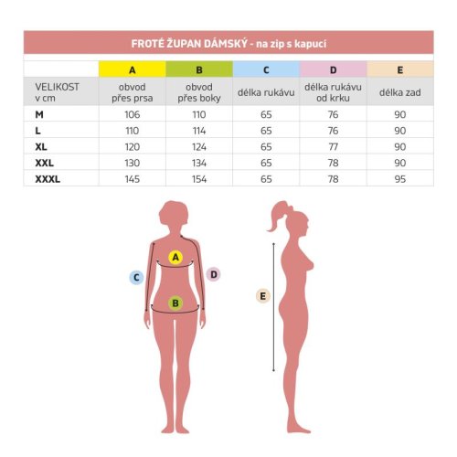 Froté župan dámský materiál 100% Bavlna - Froté 330g/m2 praní na 60°C žehlit do 150°C sušit v sušičce na nízkou teplotu zapínání na zip Župan je vyrobený z velice kvalitního froté materiálu ze 100% …