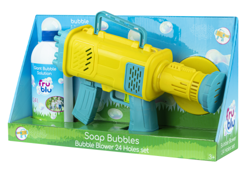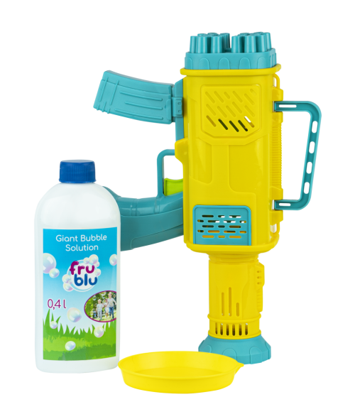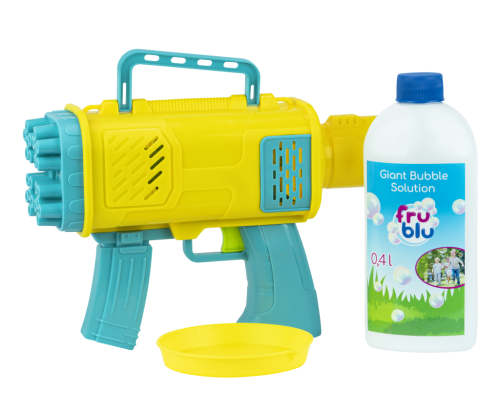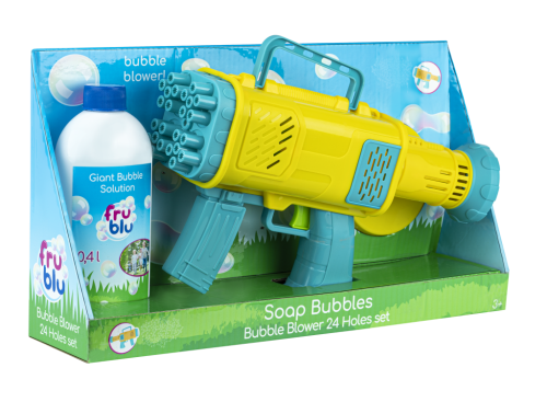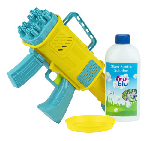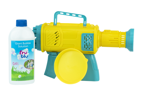Tento zcela nový super blaster vypouští miliony bublinek vystřelujících s obrovskou rychlostí a zahalí tak vše kolem tebe do duhových bublin. Blaster má zásobník na tekutinu, díky kterému je bublinování ještě rychlejší a snadnější. Ideální pro hru venku a v interiéru. V balení s 0,4l náplně. Bubliny FRU BLU dosahují obrovských rozměrů a mají neskutečné tvary. Září všemi barvy duhy. Bubliny FRU BLU vznikají díky speciální tekutině, která je produkovaná v EU. Jsou trvanlivé a jen tak neprasknou.