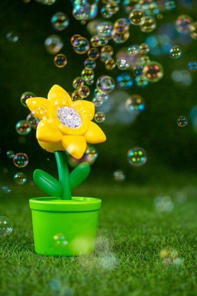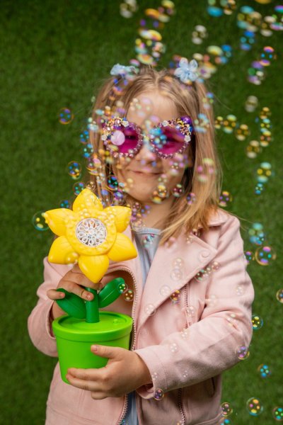 Bublinkový stroj ve tvaru květiny je ideální volbou pro nejmenší milovníky mýdlových bublin. Hračka povzbuzuje malé děti k fyzické aktivitě a zve je ke hře na chytání bublin, které poletují vzduchem. Stroj během chvilky vytvoří oblak drobných bublin a poskytne dětem skvělou zábavu a příjemné zpestření času stráveného venku. Navíc je vybaven LED světlem, díky kterému vypadají bubliny působivě i po setmění. Sada obsahuje: 2 lahvičky s roztokem na malé bubliny po 40 ml (celkem 80 ml), bublinkový stroj ve tvaru květiny. Je nutné použít 3× AA baterie 1,5 V (baterie nejsou součástí balení). Nevhodné pro děti do 3 let.