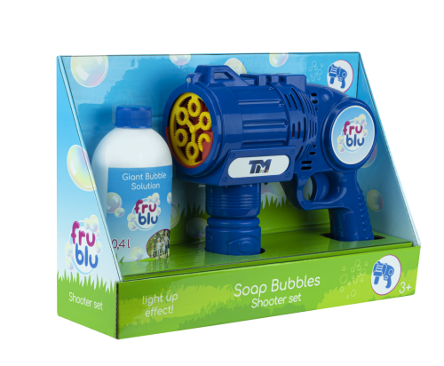 FRU BLU MEGA BLASTER - miliony bublinek vystřelujících s obrovskou rychlostí. Navíc se světelnými efekty pro ještě více zábavy. Blaster má zásobník na tekutinu, díky kterému je bublinování ještě rychlejší a snadnější. Ideální pro hru venku a v interiéru. V balení s 0,4l náplně. Bubliny FRU BLU dosahují obrovských rozměrů a mají neskutečné tvary. Září všemi barvy duhy. Bubliny FRU BLU vznikají díky speciální tekutině, která je produkovaná v EU. Jsou trvanlivé a jen tak neprasknou.