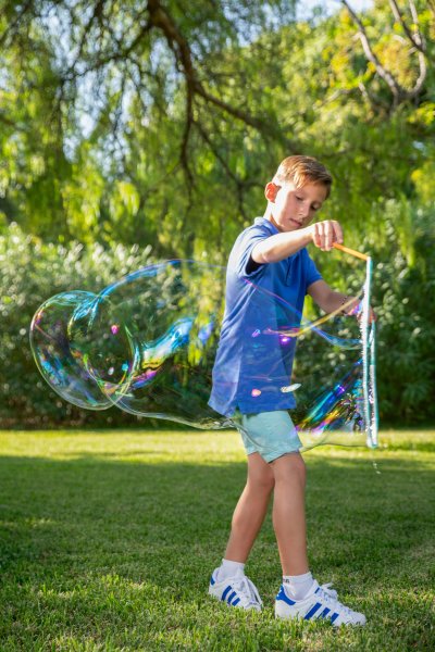 Sada několika příslušenství, která umožňují vytvářet bubliny různých velikostí – od maličkých (příslušenství Tree), přes středně velké (příslušenství Hoop), až po opravdu obří (příslušenství String). Sada obsahuje: příslušenství Hoop, Tree a String, mističku na roztok, láhev s roztokem na velké bubliny o objemu 400 ml. Nevhodné pro děti do 3 let.