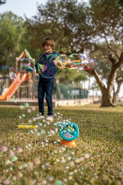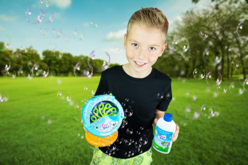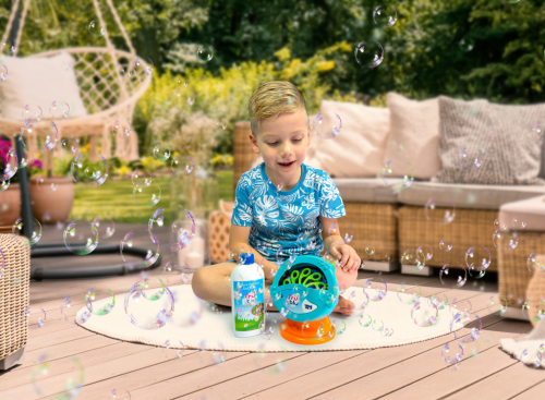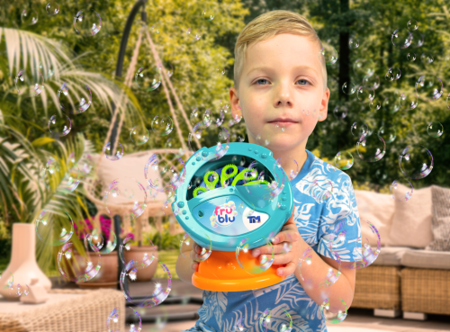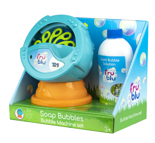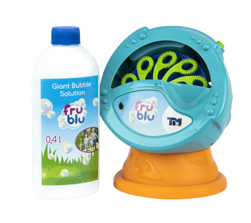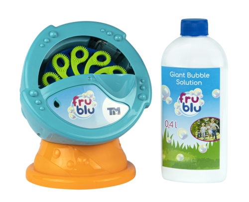 FRU BLU stroj na bubliny vytváří velké množství bublin. Ke spuštění stačí vložit 4 x AA baterie (nejsou součástí balení) a nalít FRU BLU náplň na bubliny. Poté zmáčknete spínač a děti se můžou těšit na tisíce zářivých bublin. V balení spolu s 0,5L náplně. Dbejte na umístnění na rovném povrchu. Bubliny FRU BLU září všemi barvy duhy. Bubliny FRU BLU vznikají díky speciální tekutině, která je produkovaná v EU. Jsou trvanlivé a jen tak neprasknou.