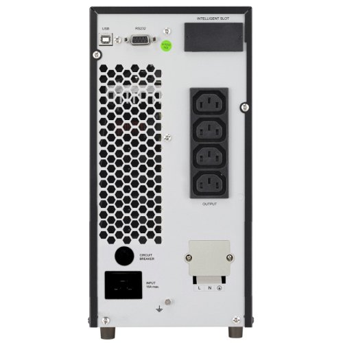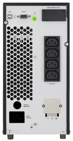 Hlavní vlastnosti: *Dvojitá konverze *Řízení mikroprocesorem optimalizuje spolehlivost *Korekce vstupního příkonu *Výkonový faktor 0.9 *Konverzní mód *Režim ECO pro úsporu energie *Funkce Smart SNMP funguje dobře s USB nebo RS-232 *Komplexní displaj umožňuje snadné sledování a přístup k stavu UPS